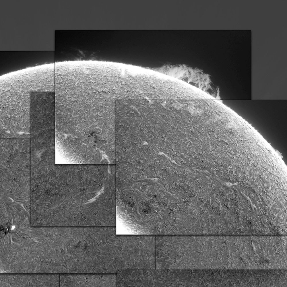 These 31 raw solar frames represent separate high-resolution captures, each focused on a different section of the Sun’s surface. Though the panels look coarse at this stage, they will be aligned, stacked, and blended into one crisp, unified image.