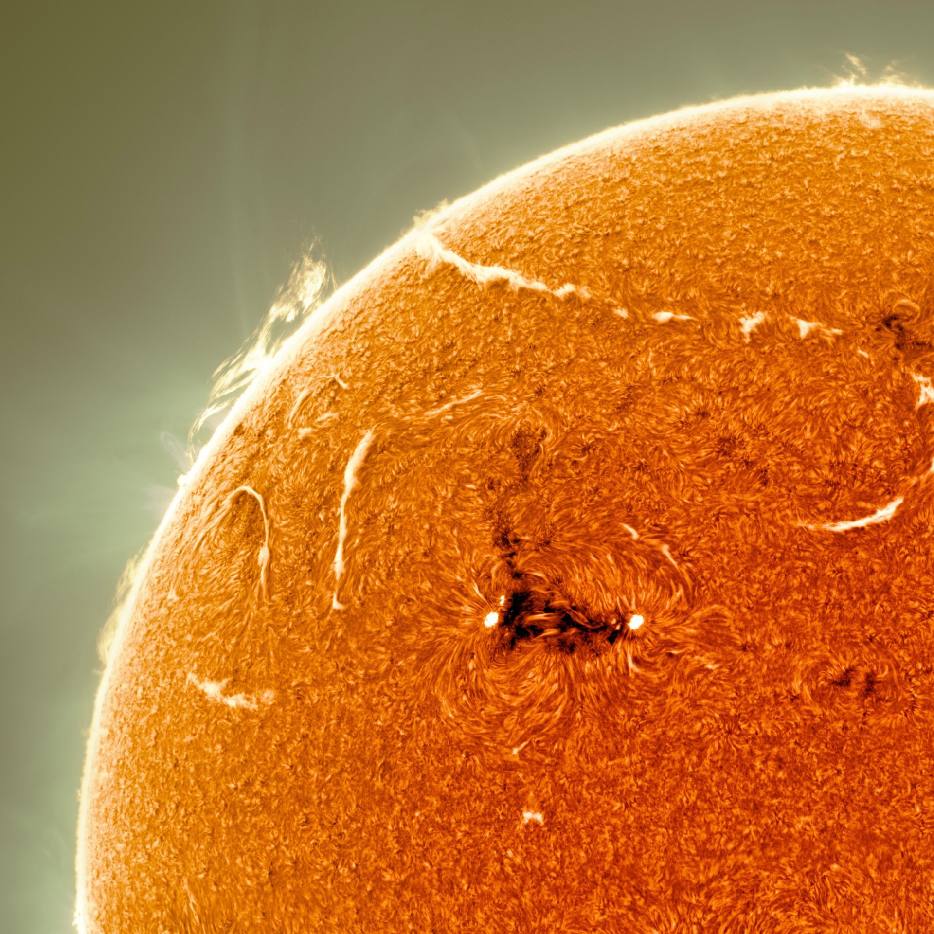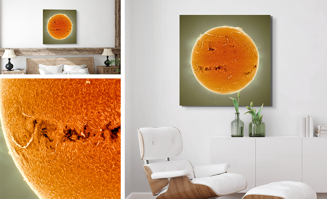 The image above is a composite of 31 separate images, each created from a series of 1000 photos taken with the use of a solar-dedicate Hydrogen Alpha telescope.