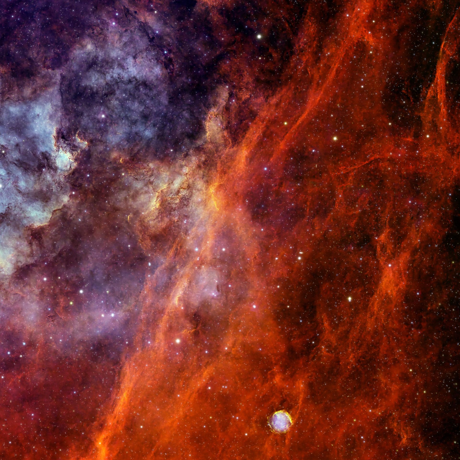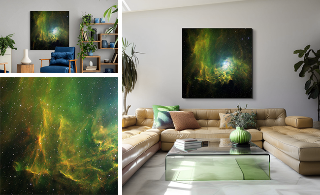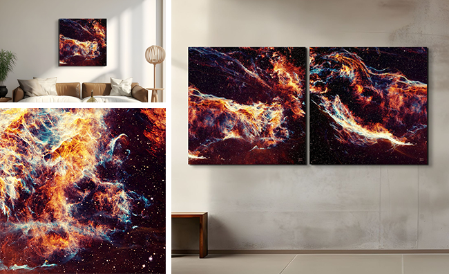 Created using expressive, non-traditional coloring techniques, the images blend dozens of monochrome exposures captured over multiple nights. Light from hydrogen, sulphur, and oxygen is isolated and reassembled to reveal the nebula’s hidden structure.