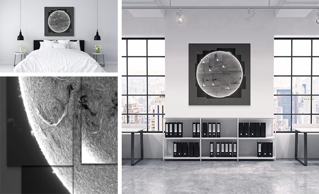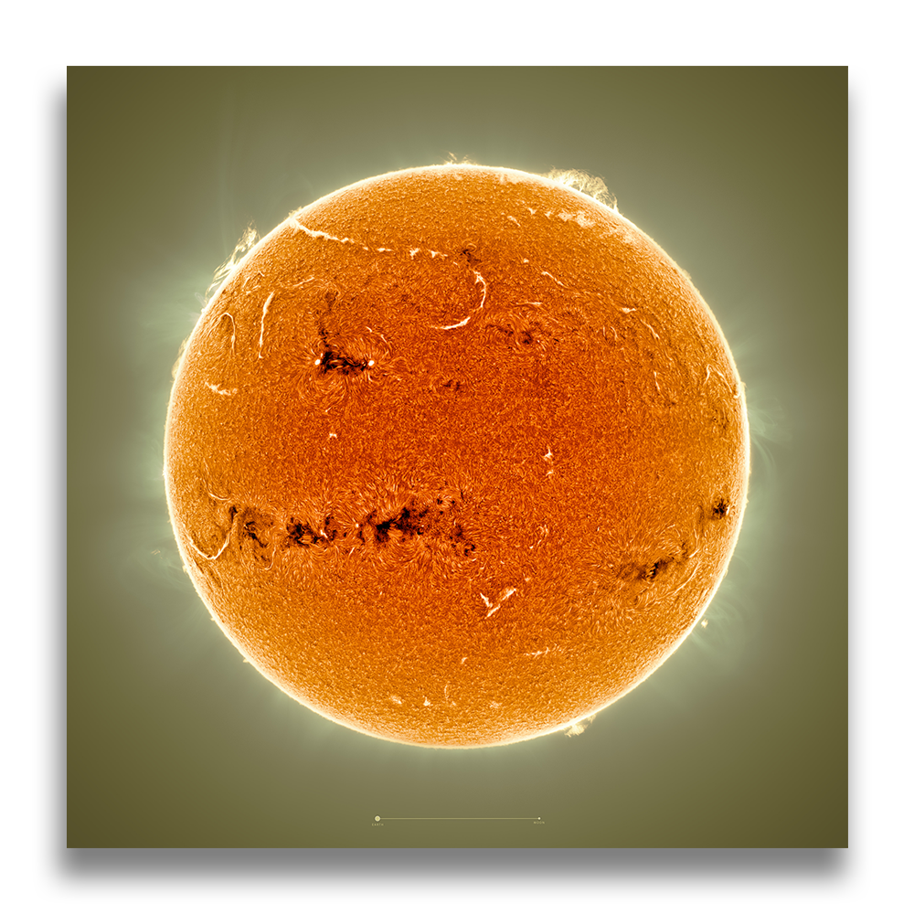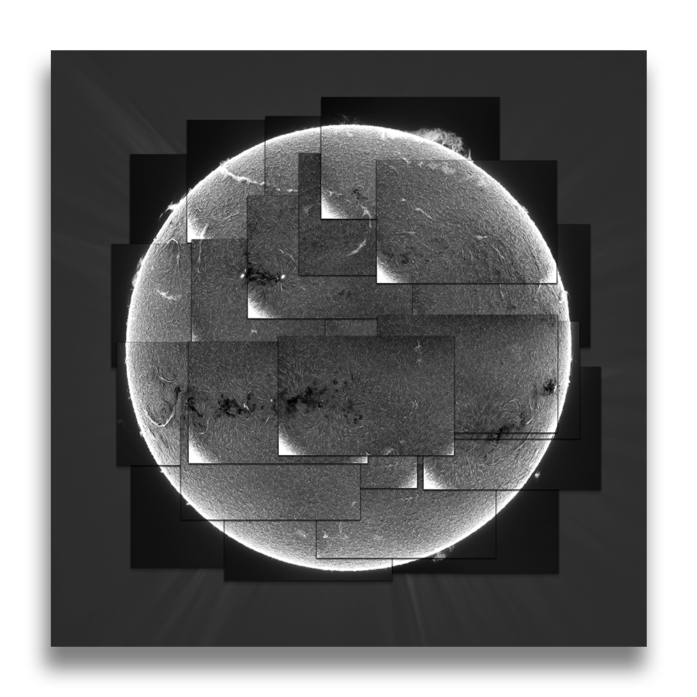 The image above is a composite of 31 separate images, each created from a series of 1000 photos taken with the use of a solar-dedicate Hydrogen Alpha telescope.